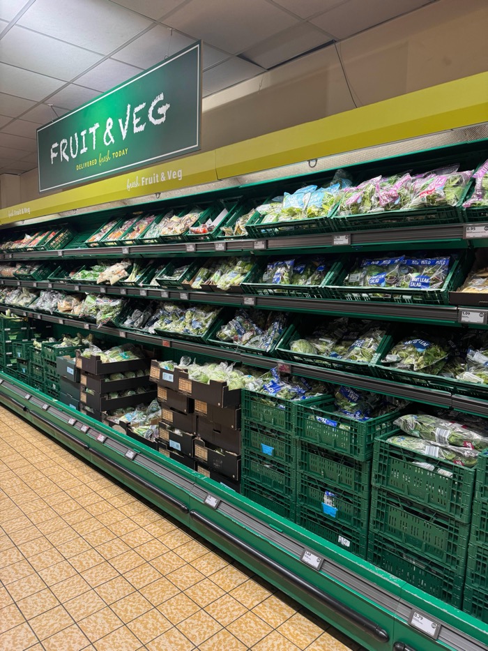 보통 영국의 마트들이 야채와 과일이 모두 저렴한 편이지만 알디는 그 중에 더 저렴합니다